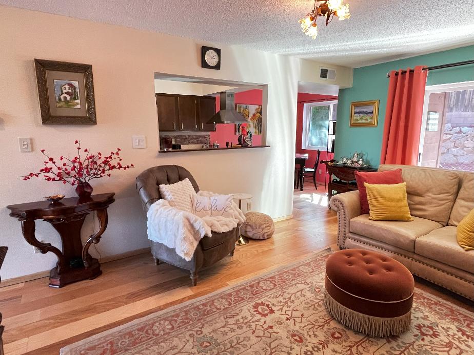 The property is conveniently located close to LANL and downtown, and has off street parking directly in front of the unit. It also offers an easy exit to Santa Fe! Most of the units in the complex are occupied by LANL employees, offering a safe, family friendly environment. Townhouse B is located right next to the unit C, which we also rent short term.